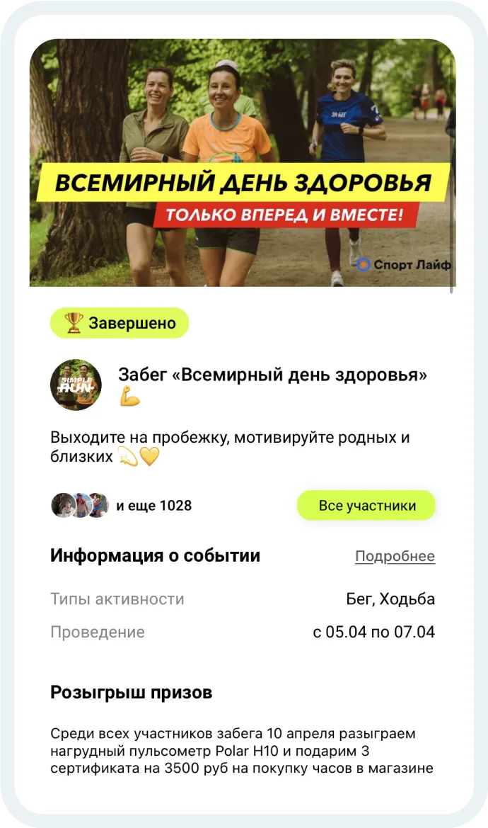 участвовать в совместных забегах.