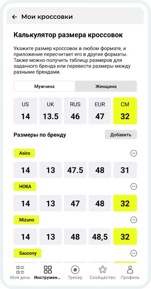Календарь забеговРазмеры кроссовок