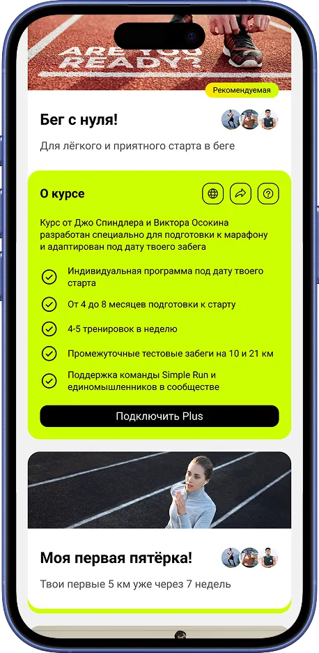 Возможность пройти выбранный курс, ставить новые цели, улучшать форму и готовиться к дистанциям целый год