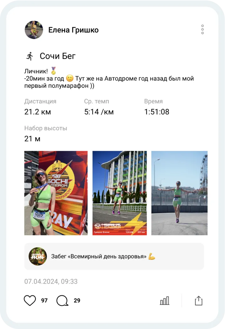 участвовать в совместных забегах.